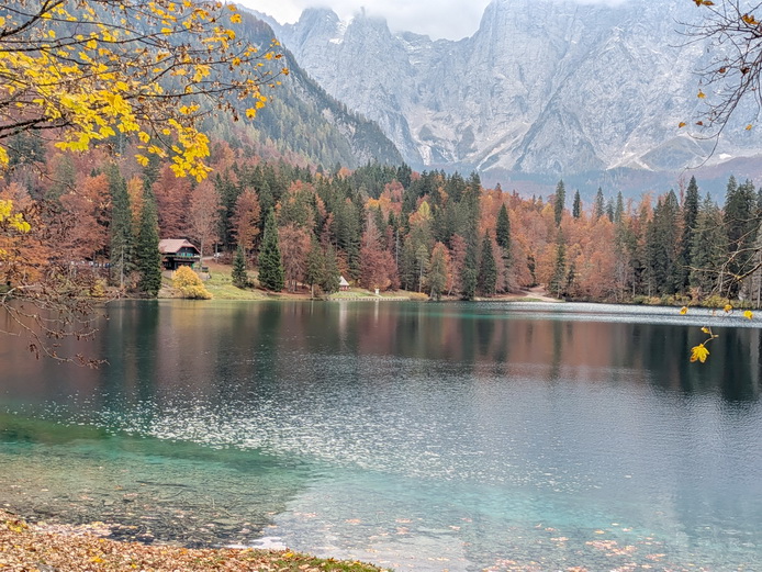 | Route | Nicht markierte Forststraße, tw. verwachsener alter Forstweg, Steigspuren, Forststraße vorbei am Kleinen Weissenfelsersee - Lago di Fusine Piccoli zur Osteria Belvedere beim See |